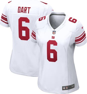 Take your fandom to the next level with this Jaxson Dart New York Giants White Game Jersey from Nike. Designed with a tailored fit specifically for women, this jersey offers a flattering silhouette that's perfect for game day. The mesh side panels provide extra breathability, keeping you cool and comfortable while you cheer on Jaxson Dart and the New York Giants.