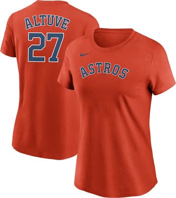 Before Jose Altuve and the Houston Astros step on the field for the next game, gear up in this Name and Number T-shirt from Nike. Its lightweight cotton fabric is breathable and comfortable, perfect for the midsummer heat of baseball season. Both the front and back are decked out in detailed graphics that will highlight your admiration of one of the game's best.