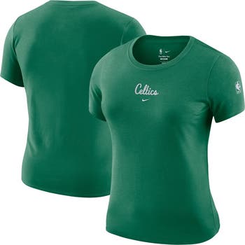 Cheer on the Boston Celtics in trendy apparel with this Courtside Modest Cropped Tri-Blend T-Shirt by Nike. Its slim fit creates a sleek, body-skimming look made from smooth and stretchy jersey fabric. The chainstitch embroidered team name adds a timeless touch to this modern Boston Celtics tee.