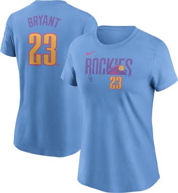 The Colorado Rockies welcome fans to "Colorful Colorado" with this Kris Bryant 2025 City Connect Fuse Name & Number T-Shirt from Nike. Inspired by the diverse landscapes and natural beauty of the Centennial State, this City Connect gear combines Colorado's colorful scenic views with the Colorado Rockies logo to create a truly unique and eye-catching piece. From the Rocky Mountains to Coors Field, you'll be able to represent Kris Bryant in style and comfort this season.