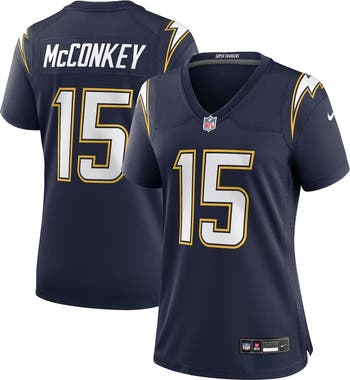 Channel your Los Angeles Chargers spirit with this Ladd McConkey Team Game Jersey from Nike. This jersey is designed for movement and features mesh side panels for extra breathability, allowing you to stay cool and comfortable. The sewn-on NFL Shield at the collar and satin twill woven jock tag at the hem provide authentic finishing touches, while the screen print name, numbers and team details showcase your Los Angeles Chargers pride.