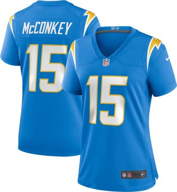 Channel your Los Angeles Chargers spirit with this Ladd McConkey Team Game Jersey from Nike. This jersey is designed for movement and features mesh side panels for extra breathability, allowing you to stay cool and comfortable. The sewn-on NFL Shield at the collar and satin twill woven jock tag at the hem provide authentic finishing touches, while the screen print name, numbers and team details showcase your Los Angeles Chargers pride.