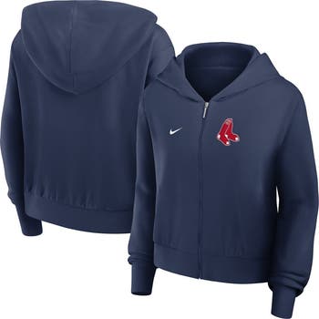 Stay cozy while repping your Boston Red Sox in this Cropped Chill Full-Zip Hoodie by Nike. Its loose fit creates a roomy, relaxed feel, while trendy dropped shoulders allow for ease of movement. French terry lining provides an extra layer of breathable warmth, making this Boston Red Sox hoodie ideal for cooler weather.
