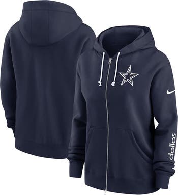 Stay cozy while repping your Dallas Cowboys with the Nike Phoenix Full-Zip Hoodie. Two front pockets provide ample space for storing small items or keeping your hands warm, while the contrast team-color drawstring adds an extra touch of pride. This hoodie is a must-have for any Dallas Cowboys fan looking to stay warm and stylish on game day and beyond.