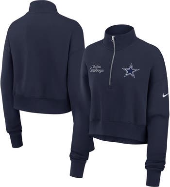 Combine fashion and comfort on cooler Dallas Cowboys game days with this Primetime Phoenix Half-Zip Sweatshirt by Nike. Cozy fleece fabric and brushed French terry lining provide a luxuriously soft feel to keep you warm and comfy. The relaxed fit and dropped shoulder seams allow for ease of movement, making this Dallas Cowboys sweatshirt ideal for cheering on your team or going out for the day.