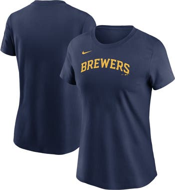 Gear up for the next Milwaukee Brewers game with this Wordmark T-shirt from Nike. Its lightweight fabric is breathable and comfortable, perfect for the midsummer heat of baseball season. The top features striking printed graphics that highlight your admiration for the Milwaukee Brewers.