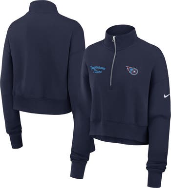 Combine fashion and comfort on cooler Tennessee Titans game days with this Primetime Phoenix Half-Zip Sweatshirt by Nike. Cozy fleece fabric and brushed French terry lining provide a luxuriously soft feel to keep you warm and comfy. The relaxed fit and dropped shoulder seams allow for ease of movement, making this Tennessee Titans sweatshirt ideal for cheering on your team or going out for the day.