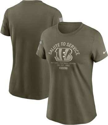 Join the Cincinnati Bengals in supporting those who bravely serve our country with this 2025 Salute to Service Sideline T-Shirt by Nike. It replicates the military-inspired design and American flag patch the team wears. Lightweight jersey fabric keeps you cool and comfortable in this meaningful Cincinnati Bengals tee. The NFL does not profit from the sale of Salute to Service products. Charitable contributions are awarded by the NFL Foundation to the NFL's Salute to Service nonprofit military partners.