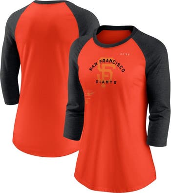 Women's Nike Orange/Black San Francisco Giants Next Up Tri-Blend Raglan 3/4-Sleeve T-Shirt