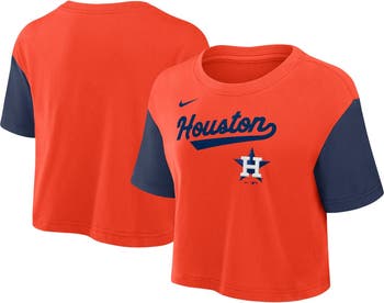 Put together a stylish Houston Astros outfit with this Script Cropped Performance T-Shirt by Nike. It features dropped shoulder seams for a relaxed, casual look that provides ease of movement. Sweat-wicking Dri-FIT technology keeps you cool and dry in this Houston Astros top, whether you're at the ballpark or on the go.