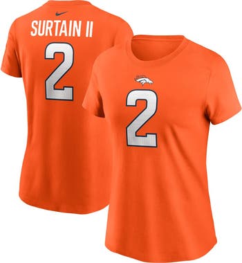 Show your favorite Denver Broncos player support with this Patrick Surtain II Name & Number T-Shirt by Nike. It features jersey-like details displayed on the back for a sporty look. Cotton fabric makes this Patrick Surtain II tee comfortable to wear every day.