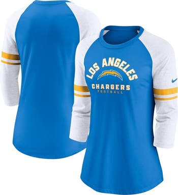Show up to game day in some fresh new gear from Nike with this Los Angeles Chargers Fashion raglan T-shirt. Along with the 3/4-sleeve design and tri-blend fabric, this tee sports graphics on the chest that any Los Angeles Chargers fan would be proud to wear ahead of kickoff. Pair this with your favorite team hat for a complete look you'll love showing off.