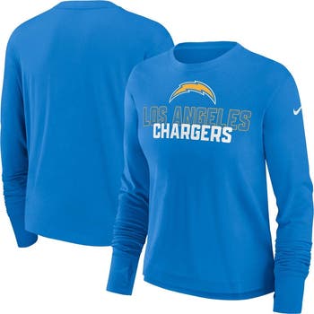 Celebrate your unwavering support for the Los Angeles Chargers with the Women's Nike Powder Blue Los Angeles Chargers Modest Crop Performance Long Sleeve T-Shirt. This stylish tee features screen-printed graphics that proudly display your Chargers pride, while the shorter hem and thumbholes provide a comfortable and functional fit. Whether you're cheering from the stands or simply showing your team spirit, this performance tee is the perfect way to represent the Los Angeles Chargers.