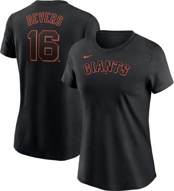 Show your unwavering support for the San Francisco Giants and Rafael Devers with this stylish Name & Number T-Shirt. Rafael Devers brings a dynamic presence to the Giants, and this Nike tee allows you to proudly display your allegiance. Crafted from lightweight jersey fabric, this shirt offers a comfortable feel, perfect for game day or everyday wear. The classic fit provides a flattering silhouette, while the screen-printed team wordmark and player details boldly showcase your fandom.