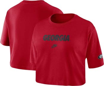 The Women's Nike Red Georgia Bulldogs Wordmark Cropped T-Shirt is the perfect way to show your support for the Georgia Bulldogs. Made from soft cotton, this cropped tee features a loose fit for a comfortable feel. The bold Georgia Bulldogs wordmark across the chest proudly displays your team spirit. Whether you're cheering from the stands or just hanging out, this t-shirt is sure to become a favorite.