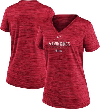 The Nike Women's Red Miami Marlins City Connect Velocity Practice Performance V-Neck T-Shirt is the ultimate way to show your unwavering support for the Miami Marlins. This shirt boasts screen-printed graphics that proudly display your team spirit. Dri-FIT technology ensures you stay cool and dry, even in the heat of the game. The stylish V-neck design adds a touch of elegance, while the prominent Miami Marlins logo on the chest showcases your unwavering loyalty. Whether you're cheering from the stands or just relaxing at home, this T-shirt is a must-have for any true Marlins fan.