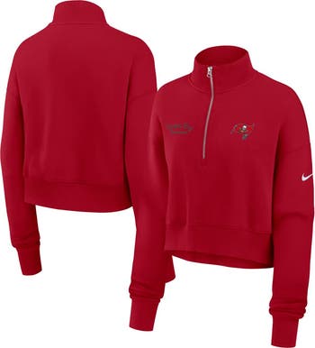 Combine fashion and comfort on cooler Tampa Bay Buccaneers game days with this Primetime Phoenix Half-Zip Sweatshirt by Nike. Cozy fleece fabric and brushed French terry lining provide a luxuriously soft feel to keep you warm and comfy. The relaxed fit and dropped shoulder seams allow for ease of movement, making this Tampa Bay Buccaneers sweatshirt ideal for cheering on your team or going out for the day.