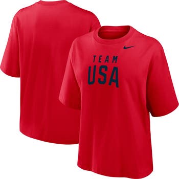 Elevate your Team USA style with this Boxy T-Shirt by Nike. Its loose, boxy silhouette and dropped shoulders create a relaxed and roomy fit perfect for cheering on your favorite athletes or casual outings. Made with soft jersey fabric, this Team USA tee provides a comfortable feel all day.