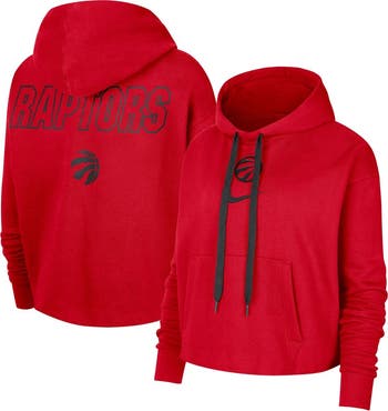 Women's Nike Red Toronto Raptors Courtside Cropped Pullover Hoodie