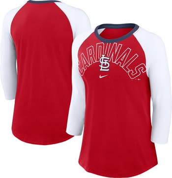Women's Nike Red/White St. Louis Cardinals Knockout Arch 3/4-Sleeve Raglan Tri-Blend T-Shirt