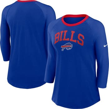Show up on Buffalo Bills gameday with a laid-back showing of team spirit by snagging this 3/4 sleeve T-shirt from Nike. It features a distinct Buffalo Bills graphic and wordmark printed across the torso for a fan-forward display. The raglan sleeves offer greater freedom of movement in the shoulders and arms, while the rounded hem ensures this laid-back rests comfortably at the waist with each wear.