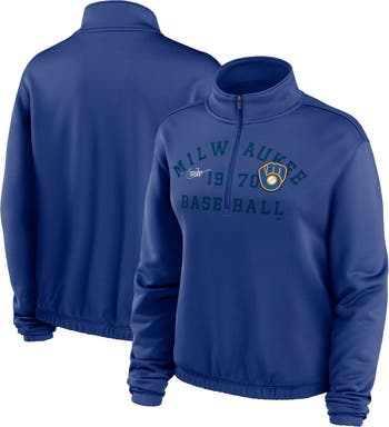 Demonstrate your loyalty to the Milwaukee Brewers by wearing this Rewind Splice sweatshirt from Nike. Its printed graphics feature the team's founding year and an authentic Milwaukee Brewers logo. Plus, the half-zip closure helps you stay at just the right temperature.