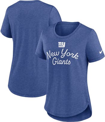 Cheer on the New York Giants in vintage style with this Script Tri-Blend T-Shirt by Nike. Its heathered fabric features the franchise name printed in cursive below the team logo. Tri-blend material creates a super-soft feel, making this New York Giants tee a go-to for game day or casual outings.