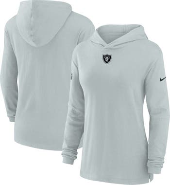 The Nike Silver Las Vegas Raiders Sideline Performance Long Sleeve Hoodie T-Shirt is the ultimate way to show your unwavering support for the Las Vegas Raiders. Crafted from a cozy blend of cotton and polyester, this long-sleeved hoodie boasts screen-printed graphics that proudly showcase your Raiders allegiance. Equipped with Dri-FIT technology, it ensures you stay cool and comfortable throughout the game, whether you're cheering from the stands or watching from the comfort of your home.