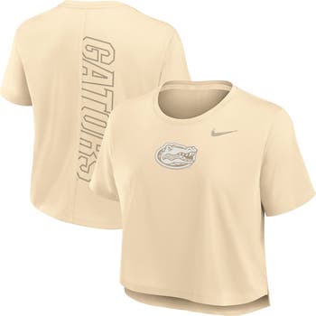 Show off your love for the Florida Gators in style with this Nike Performance Cropped T-Shirt. This cropped tee is crafted with Dri-FIT technology, ensuring you stay cool and dry whether you're cheering on the Florida Gators in attendance or from the comfort of home. Its droptail hem with side splits delivers a flattering fit, while the tonal team logo and wordmark provide a subtle yet stylish display of your team pride.
