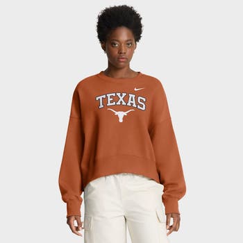 Stay comfy in fashionable Texas Longhorns apparel with this Oversized Phoenix Arch Sweatshirt by Nike. It features dropped shoulders and scrunched sleeves for a trendy look and relaxed fit. Fleece fabric and brushed French terry lining provide exceptional warmth and a luxuriously soft feel, making this Texas Longhorns sweatshirt perfect for cooler game days or casual outings.