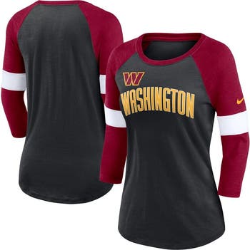 Put eyes on your Washington Commanders pride with this Nike Football 3/4-sleeve T-shirt. Roomy raglan sleeves and blended fabric make for the ultimate casual feel. In addition, signature Washington Commanders graphics and colors let everyone know who you cheer for on game day.