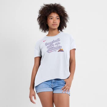 The Colorado Rockies welcome fans to "Colorful Colorado" with this 2025 City Connect Flowy Fashion Tri-Blend Performance T-Shirt from Nike. Inspired by the diverse landscapes and natural beauty of the Centennial State, this City Connect gear combines Colorado's colorful scenic views with the Colorado Rockies logo to create a truly unique and eye-catching design. From the Rocky Mountains to Coors Field, you'll be able to represent your favorite MLB team in style and comfort all season long.