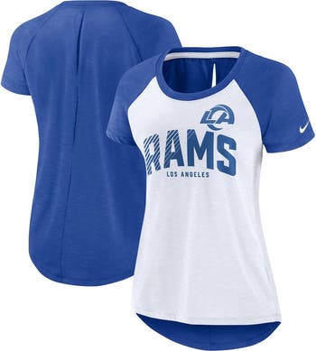 Women's Nike White/Heather Scarlet Los Angeles Rams Back Slit Lightweight Fashion T-Shirt
