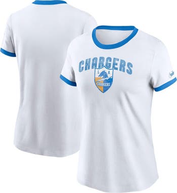 Women's Nike White Los Angeles Chargers Rewind Ringer Tri-Blend T-Shirt
