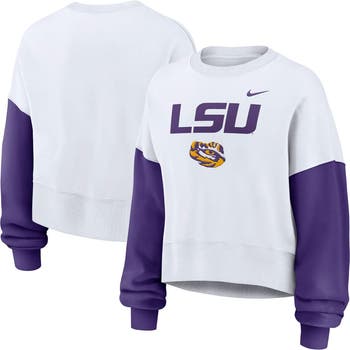 Show off your LSU Tigers fandom in this Color-Block Oversized Cropped Pullover Sweatshirt by Nike. It features a roomy, oversized fit perfect for staying warm on game day or casual occasions. French terry lining adds extra warmth and comfort to this LSU Tigers sweatshirt, while the dropped shoulders and scrunched sleeves create a trendy look.