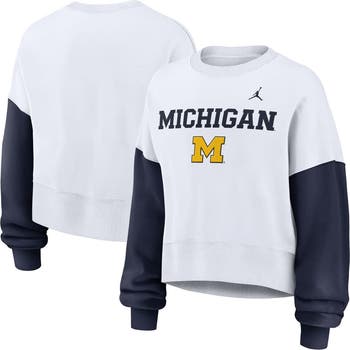 Show off your Michigan Wolverines fandom in this Color-Block Oversized Cropped Pullover Sweatshirt by Nike. It features a roomy, oversized fit perfect for staying warm on game day or casual occasions. French terry lining adds extra warmth and comfort to this Michigan Wolverines sweatshirt, while the dropped shoulders and scrunched sleeves create a trendy look.