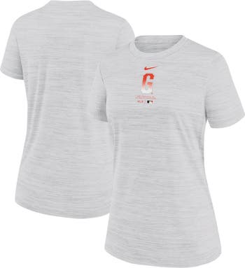 Celebrate your unwavering support for the San Francisco Giants with the Women's Nike White San Francisco Giants City Connect Practice Velocity T-shirt. This officially licensed tee features heat-sealed graphics that proudly display the Giants' iconic logo, making it the perfect way to show your team spirit. Made from durable polyester, this comfortable crew neck t-shirt is perfect for any Giants fan looking to represent their team in style.