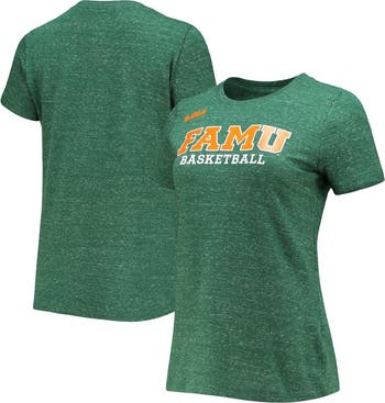 Celebrate your unwavering support for the Florida A&M Rattlers with the Women's Nike x LeBron James Heathered Green Florida A&M Rattlers Basketball Varsity T-Shirt. Crafted from a breathable cotton and polyester blend, this varsity-style tee features the iconic Florida A&M Rattlers logo, proudly displaying your allegiance to the Rattlers. Whether you're cheering from the stands or representing your team off the court, this t-shirt is the perfect way to showcase your Florida A&M Rattlers pride.