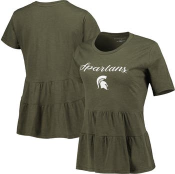 Women's Olive Michigan State Spartans Willow Ruffle-Bottom T-Shirt