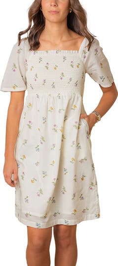 Where pretty meets comfortable. Our beautiful floral print dress has light and airy bell sleeves, delicate trim, and a stretchy and flattering smocked bodice. Cut from our soft organic cotton batiste, fully lined in organic cotton, and has pockets. You'll want to wear this easy style all spring and summer long.