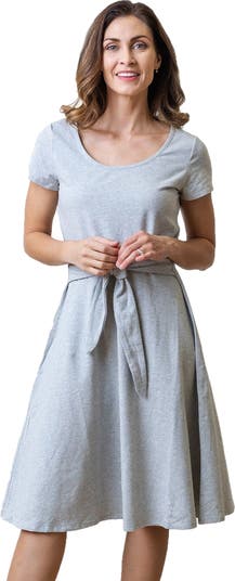 An easy fit and flare silhouette and comfy stretch-blend organic cotton make this nautical-inspired dress a spring and summer staple. Features short sleeves, a rounded neckline, and a faux waist tie for that feminine touch. Flattering fit and flare cut. The ultimate cozy dress you'll want to wear all season long.