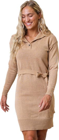 A warm and stylish piece, this sweater dress will carry you through the season in comfort with cozy organic cotton. Features a dramatic wide spread collar with button placket and a removable waist sash for a variety of styling options. Pair this with sneakers by day or knee high boots by night - it works either way!