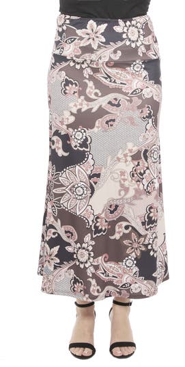 Bring easy style to any day with this brown paisley print maxi skirt from 24seven Comfort Apparel. The elastic waistband and flowy A line shape create a relaxed, flattering fit, while the soft stretch fabric keeps you comfortable. Machine washable and tumble dry, it pairs well with fitted tops, denim layers, or bold jewelry for effortless flair.