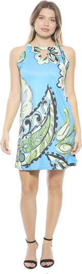 Womens Paisley Knee Length Paisley Sleeveless Keyhole Dress