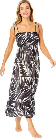 Women's Palm Chic Smocked Shoulder Tie Dress Cover Up