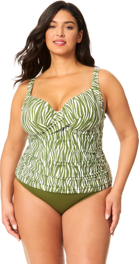 Women's Plus Sierra Woodblock Drape Front Underwire Tankini Swim Top is a tankini swim top from Anne Cole created for comfort style and confidence. This womens designer piece features flattering shaping and soft premium fabric perfect for beach pool and resort wear. womens tankini swimsuit plus size swimwear womens swimwear Anne Cole swimwearFeaturesSupportive built in bra styling for shaping and liftEasy mix and match swim separate works with your favorite bikini bottomsSoft quick drying swim fabric for easy care and comfortFade resistant material helps keep the print and color looking freshFully lined for confident coverage in and out of the waterIdeal for vacations beach days cruises and everyday swimWear this Anne Cole favorite with coordinating tops and bottoms from the collection for a polished womens swimwear look that feels good all day long.