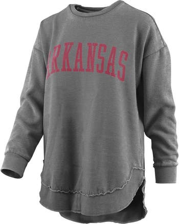 The Women's Pressbox Black Arkansas Razorbacks Vintage Wash Pullover Sweatshirt is the perfect way to show your support for the Arkansas Razorbacks. Made from a comfortable polyester and cotton blend, this midweight sweatshirt features a fleece lining for added warmth during chilly game days. The rounded droptail hem with unfinished seams gives it a vintage look, while the washed fabric adds a touch of style. Whether you're cheering from the stands or simply showing your support, this sweatshirt is the perfect way to represent the Arkansas Razorbacks in style.