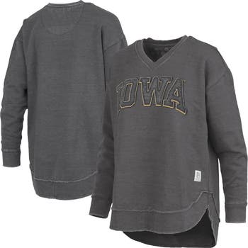 Show off your school pride in cozy comfort with this Iowa Hawkeyes Westin Poncho V-Neck Pullover Sweatshirt from Pressbox. The embroidered self-fabric appliques with outline stitching add a touch of Iowa Hawkeyes spirit, while the raw-edge hem provides a vintage-inspired touch. Its oversized fit and soft cotton blend make it the perfect layer for those crisp game days.
