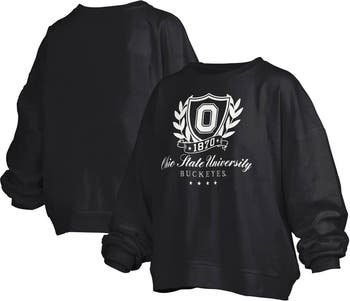 Women's Pressbox Black Ohio State Buckeyes Big Aug Script Janice Oversized Pullover Sweatshirt