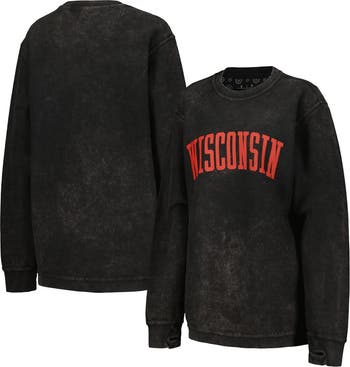 The Women's Pressbox Black Wisconsin Badgers Comfy Cord Vintage Wash Basic Arch Pullover Sweatshirt is the perfect way to show your support for the Wisconsin Badgers. Made from soft and comfortable cotton, this sweatshirt features distressed corduroy fabric for a vintage look. The lightweight design is perfect for mild temperatures, and the thumbholes in the cuffs keep your hands warm. Whether you're cheering on the Badgers at the game or relaxing at home, this sweatshirt is sure to become a favorite.
